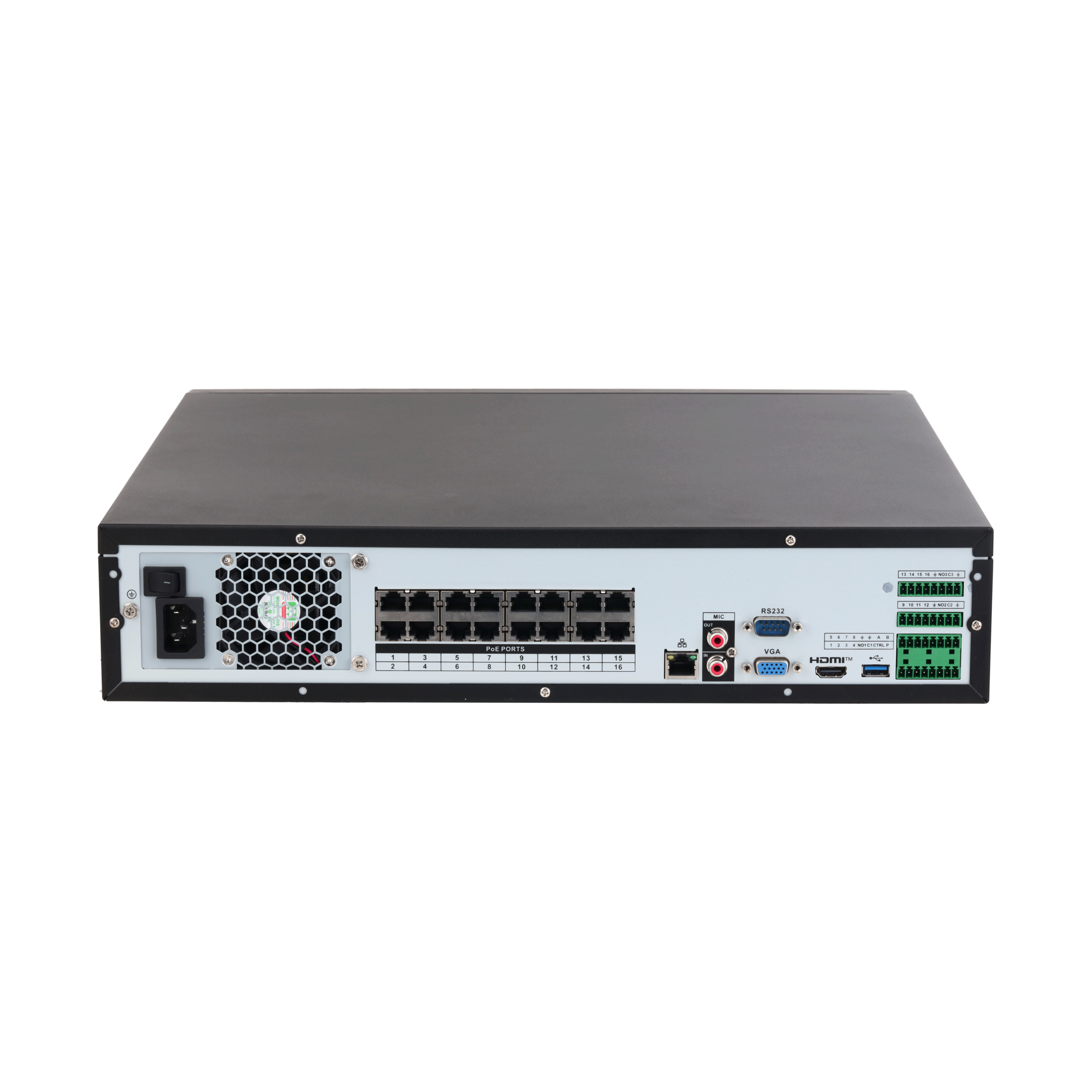| Krotki_opis | 16 kanałowy rejestrator IP Wbudowany 16 portowy switch PoE 150W Obsługa 8 dysków twardych Obsługa kamer IP 16Mpx Wyjście HDMI4K/VGA Alarm 16/4, audio 1/1 Wbudowane funkcje inteligentne |