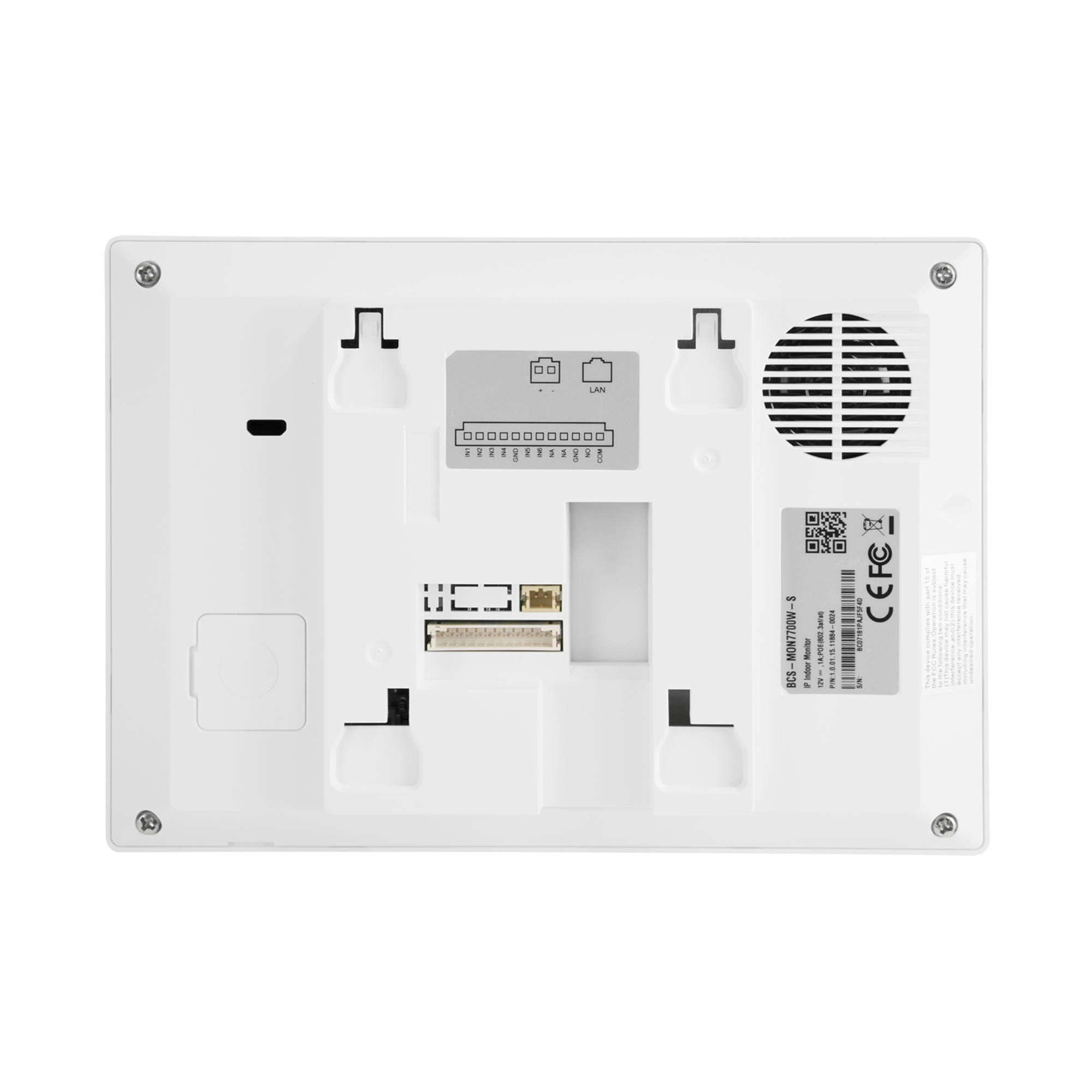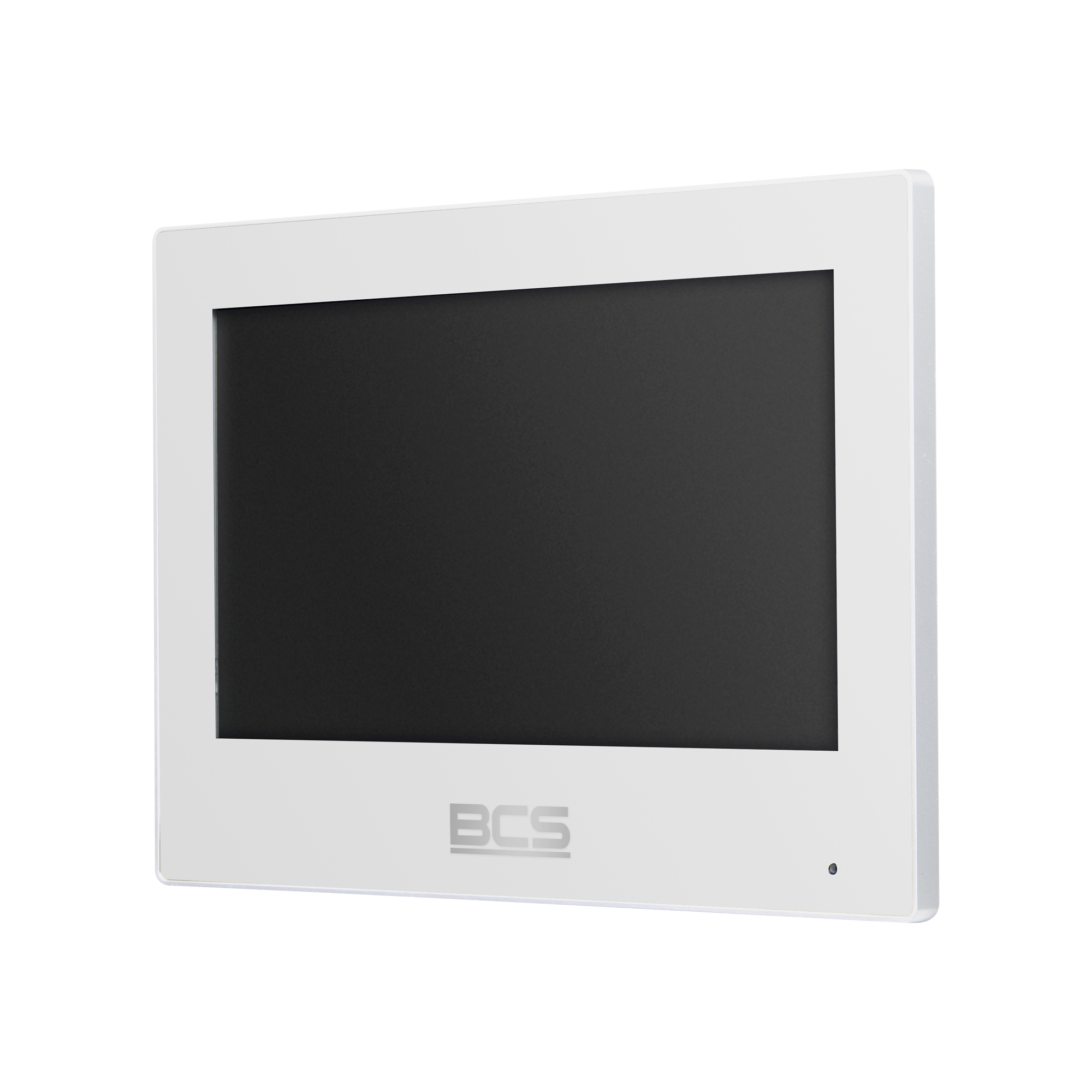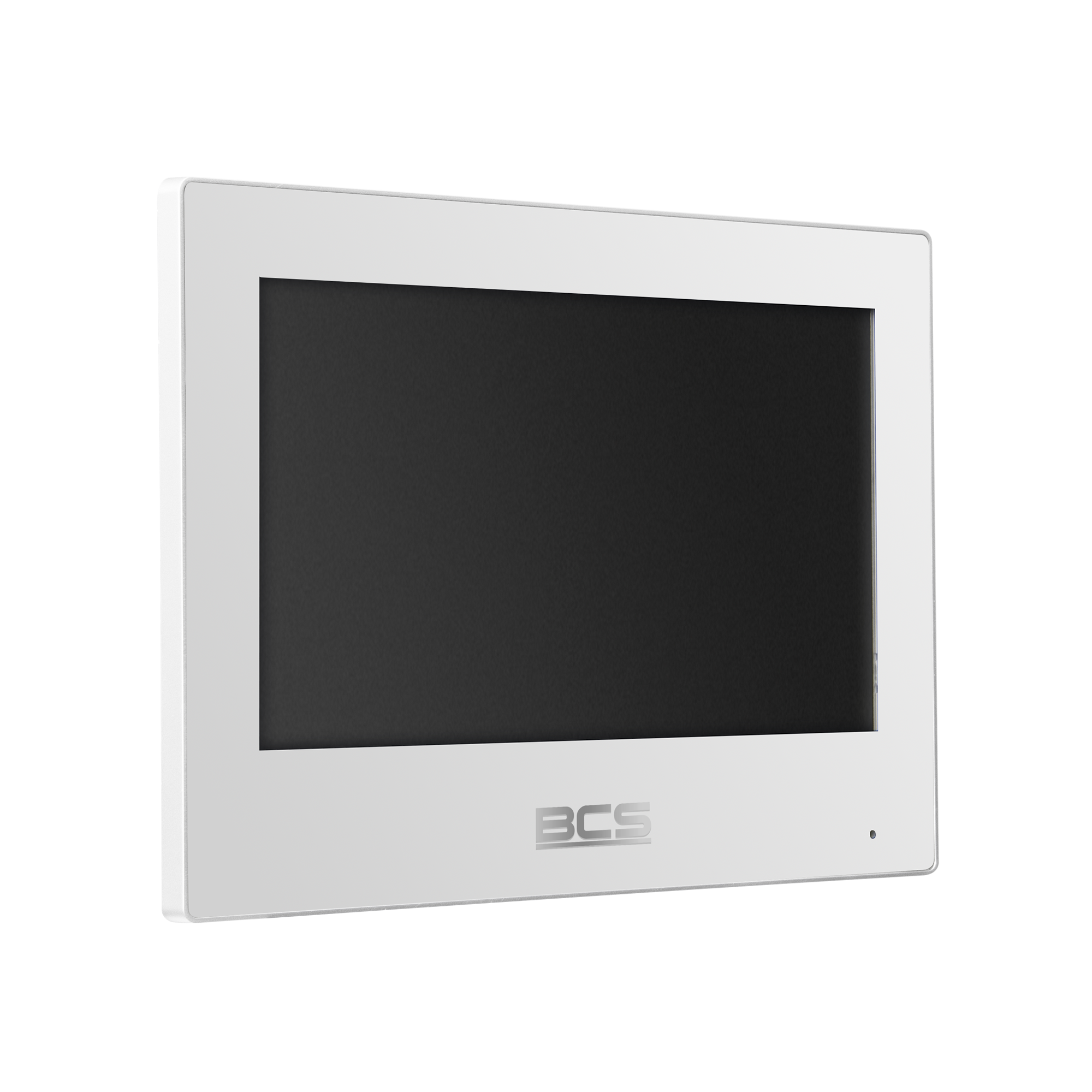 Wideomonitor IP, obudowa z tworzywa sztucznego w kolorze białym, pojemnościowy dotykowy ekran 7″ TFT, rozdzielczość 1024*600, podgląd kamer IP BCS Line oraz Onvif, zasilanie 12VDC lub PoE 802.3 at/af/passive, max rozbudowa do 10 monitorów w jednym lokalu dla systemów jednorodzinnych i do 5 dla systemów wielorodzinnych, wsparcie kodowania H.264, oraz H.265, wyjście przekaźnikowe NO, COM, gniazdo karty pamięci wbudowane w płytę główną (brak karty w komplecie).