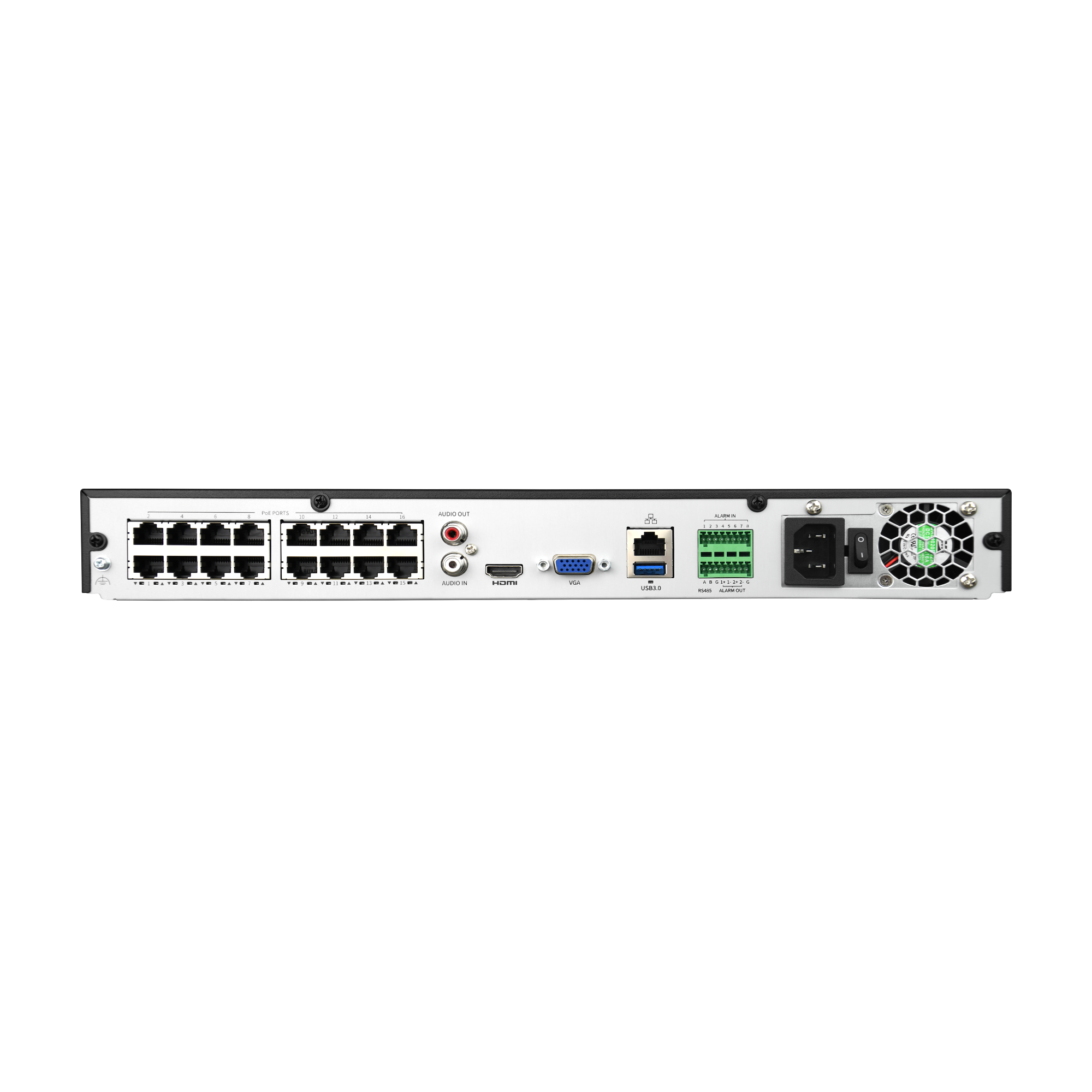 | Krotki_opis | 16 kanałowy rejestrator IP Zgodność z NDAA Wbudowany 16 portowy switch PoE 240W Obsługa 2 dysków twardych Obsługa kamer IP 16Mpx Alarm 8/2, audio 1/1 Wyjście HDMI4K/VGA |