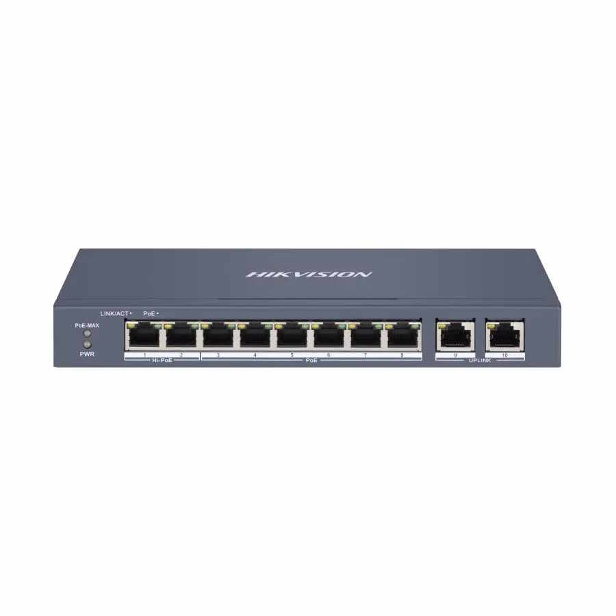 DS-3E1310HP-EI Switch 8xPoE 2xUpLink 1G 2xHPoE budżet 110W 54VDC