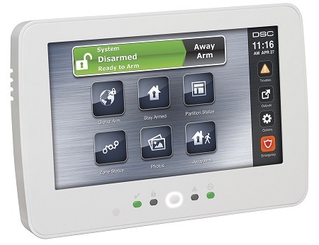 Klawiatura dotykowa, podświetlana z ekranem LCD 7″ dedykowana do pracy w systemach alarmowych DSC PowerSeries NEO z obsługą do 16 klawiatur w systemie oraz czytnikiem breloków zbliżeniowych PROX. Możliwość uzbrajania/rozbrajania systemu alarmowego przy użyciu breloka, bez konieczności pamiętania kodu. Wyświetlacz LCD tekstowy 2×16 znaków podświetlany na niebiesko, klawisze funkcyjne podświetlane na biało z możliwością konfiguracji według własnych potrzeb, przyciski alarmowe, wbudowany czujnik niskiej temperatury. Wbudowany slot na kartę pamięci, podwójne zabezpieczenie sabotażowe przed otwarciem obudowy i oderwaniem od ściany. Klasa szczelności obudowy: IP30, klasa wandaloodporności: IK04. Napięcie zasilania: DC 12V. Wymiary: 161 x 161 x 50 mm. Obudowa w kolorze białym.
