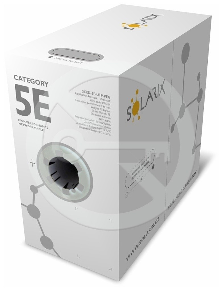 | Krotki_opis | Kabel instalacyjny Solarix CAT5E UTP PE Fca zewnętrzny żelowany czarny 305m/box |